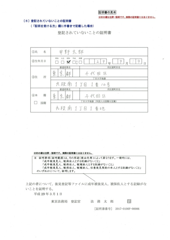 出典:「成年後見登記に関する証明書の見本について」(東京法務局)