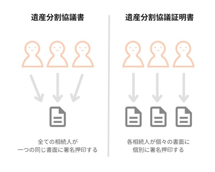 「遺産分割協議証明書」と「遺産分割協議書」は、名称や作成方法が異なりますが、効力は同じです。相続人全員の遺産分割協議証明書を提出することで、不動産の相続登記や預貯金の払い戻しなどの相続手続きを行うことができます。