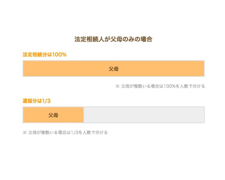 次に、遺留分割合を確認します。 前述のとおり、直系尊属のみが相続人である場合は法定相続分の3分の1、それ以外の場合は法定相続分の2分の1が遺留分割合です。