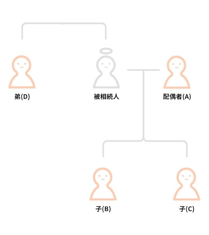 →B・Cの相続放棄により、相続権が弟Dに移ります。 配偶者と兄弟姉妹の相続分は3:1なので(民法900条3号)、Aの相続分は4分の3、Dの相続分は4分の1となります。