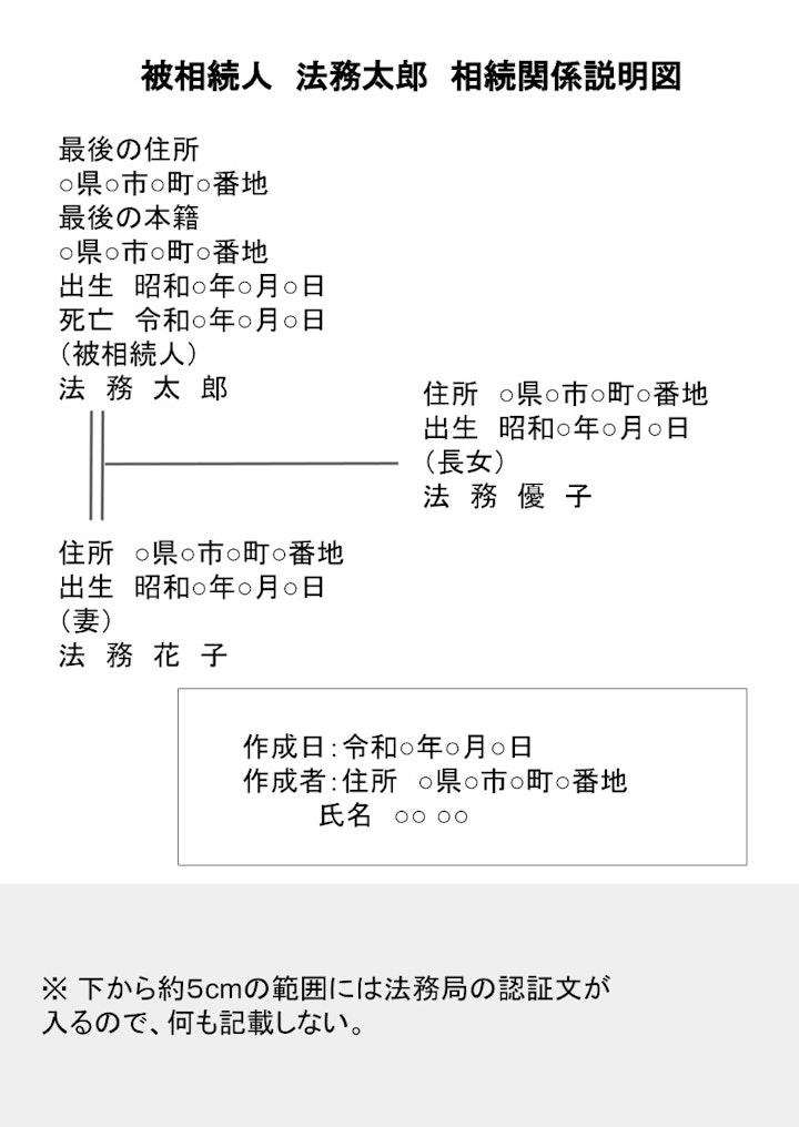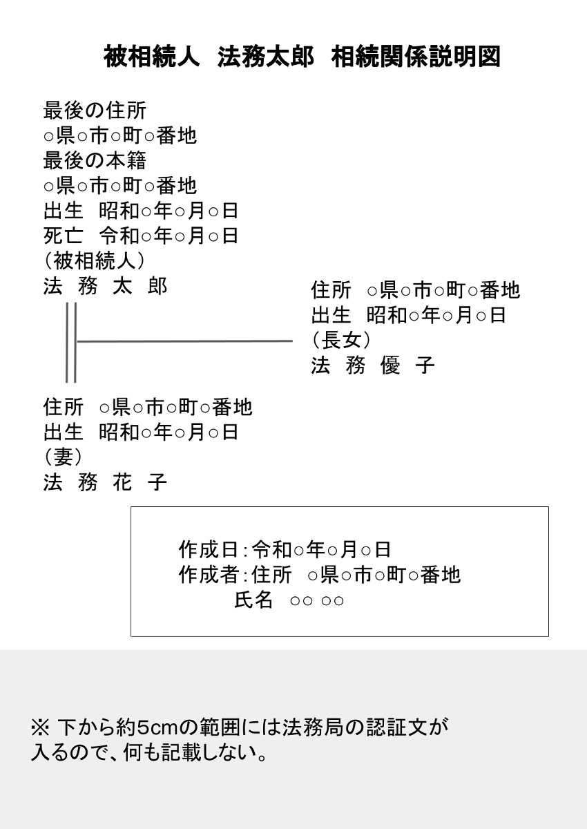 相続関係説明図を作成する場合には、法務局が公開している法定相続情報一覧図のテンプレートを利用すると便利です。